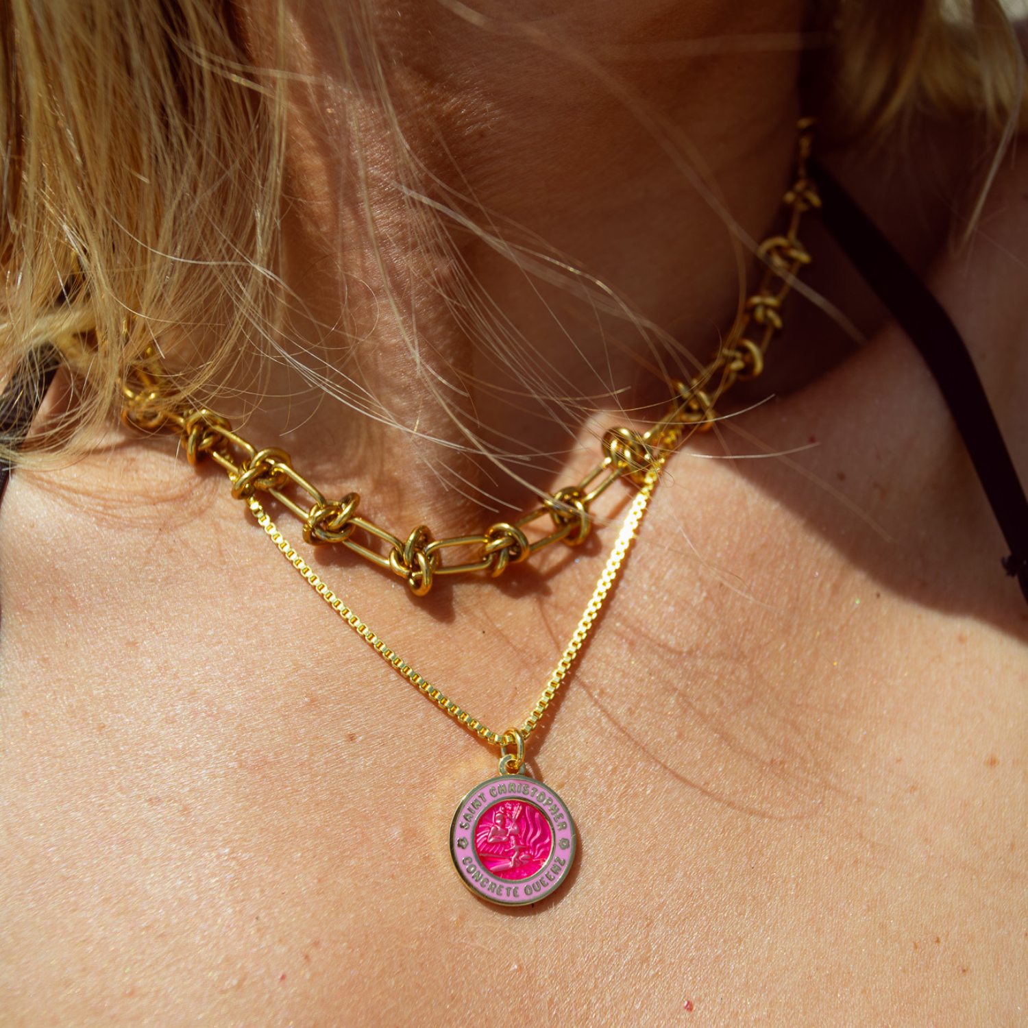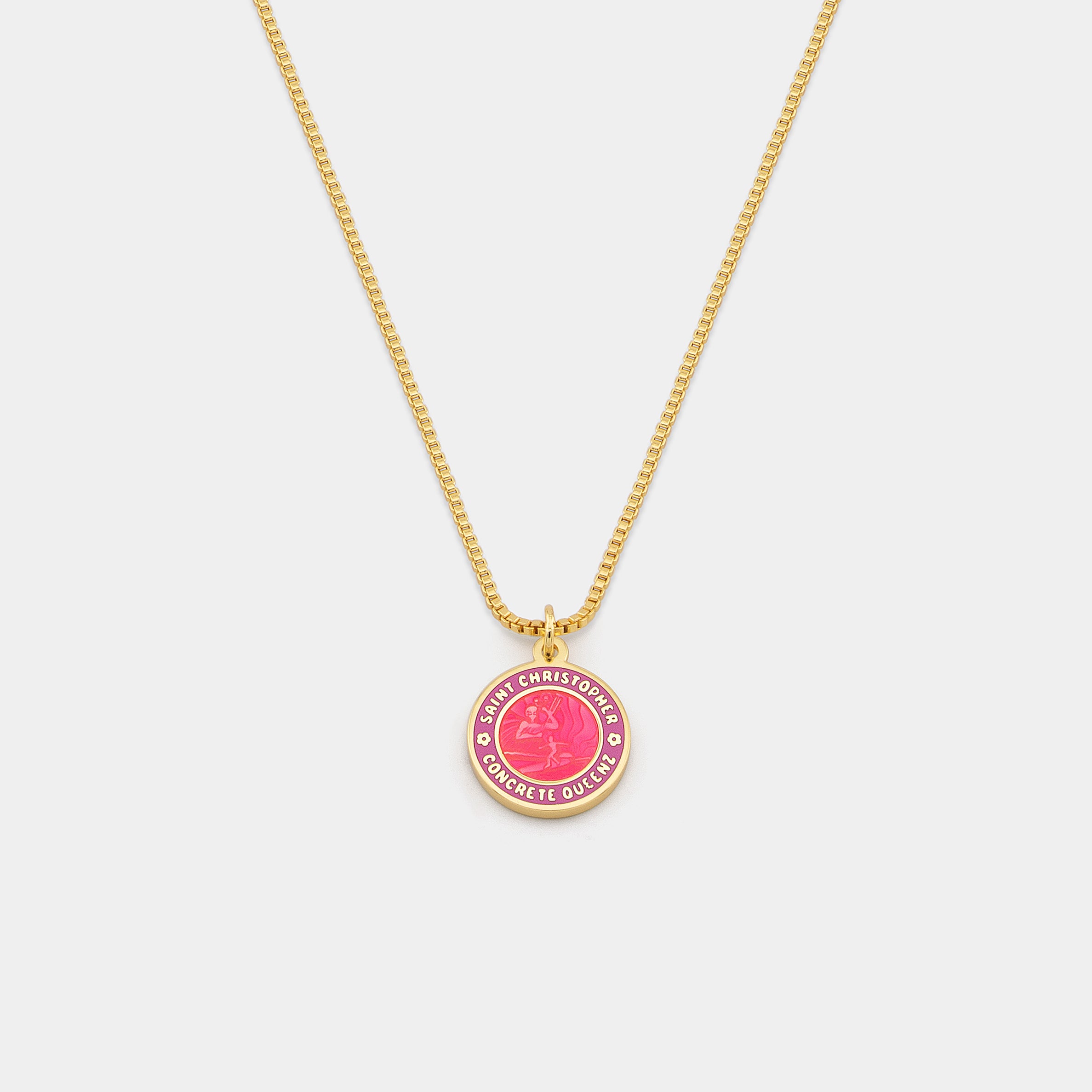 - Médaille Saint-Christophe en édition limitée, plaquée or et émail rose, 19 mm