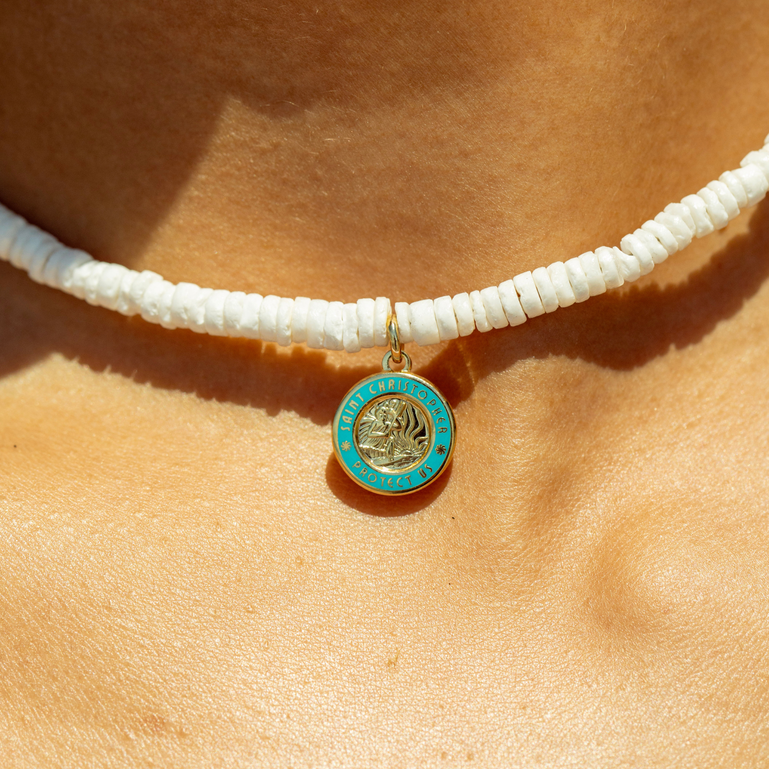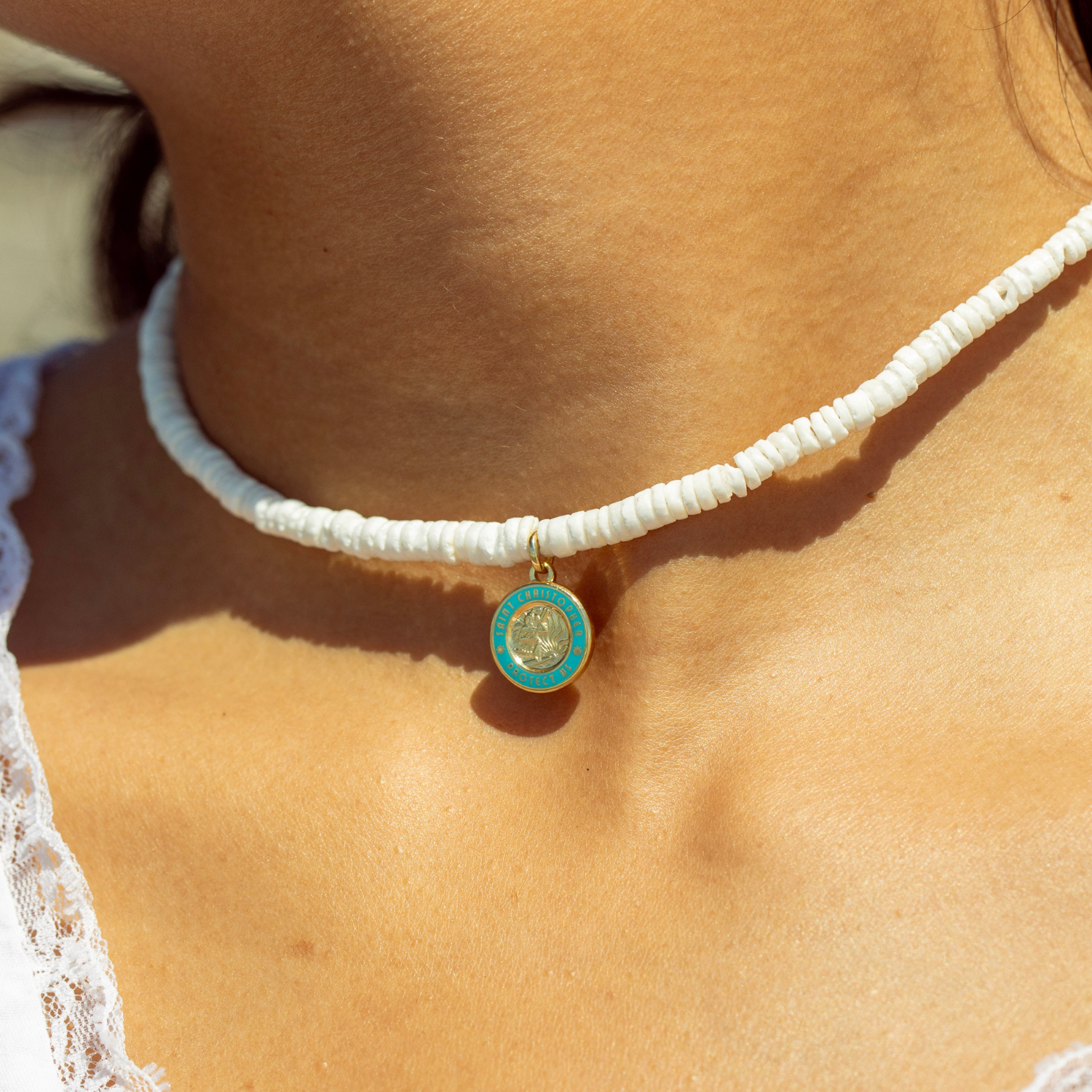 - Orné d'un petit Saint-Christophe doré et bleu ciel